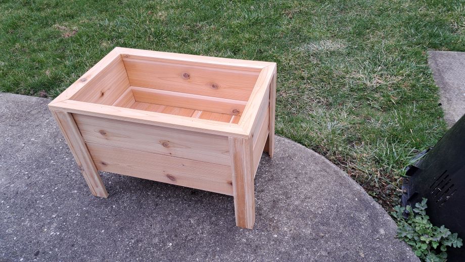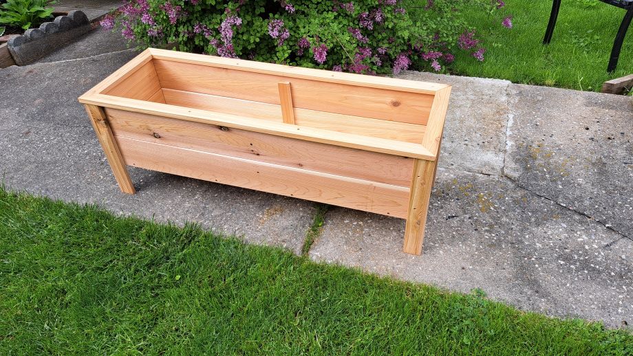 Raised cedar planter - $140 Approximate size- 36"L x16"W x29"H. Elevated for those that have trouble bending.These planters are made on order.